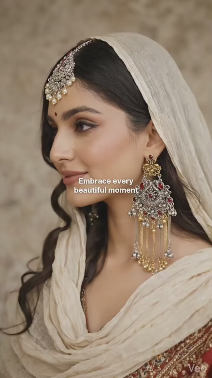 Heritage Kashmiri Long Tassel Earrings – Antique Gold & Silver Ethnic Dangler