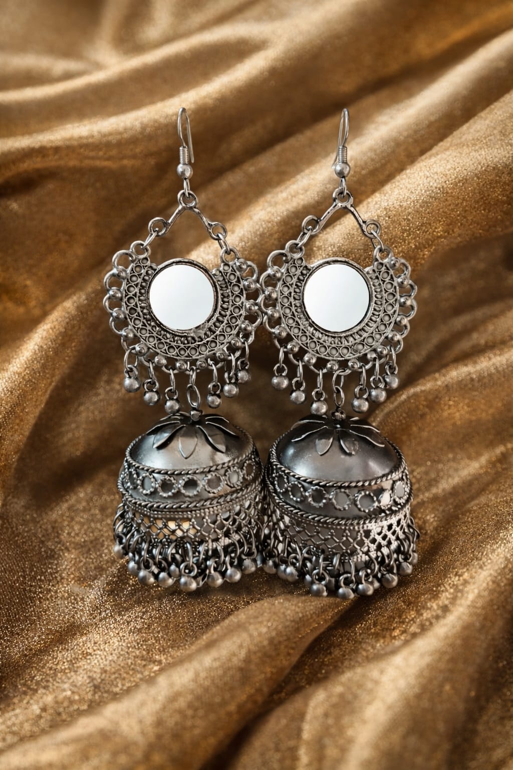 Oxidised Silver Jhumka Earrings for Women – Traditional Indian Jhumka | Velvet Petals